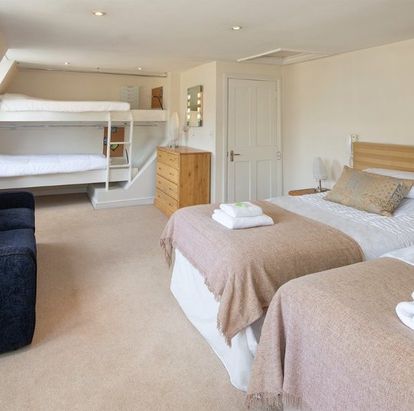 Bedroom one x1 super king x1 sofa Bedroom two x2 single / super king Bedroom three x2 bunk beds x2 single / super king